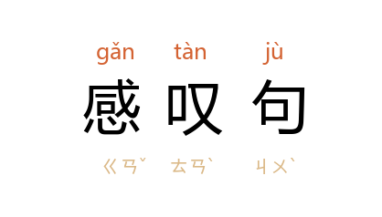 ⒈ 以感叹的呼声表露出强烈感情的句子。其语调特殊,音高的变化也往往比较大,而句末多使用惊叹号。如「原来是你!」、「这件事太美了!」