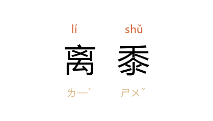 ⒈ 《诗·王风·黍离序》:“《黍离》,闵宗周也。周大夫行役至于宗周,过故宗庙宫室,尽为禾黍,闵周室之颠覆,仿徨不忍去,而作是诗也。”后遂以“离黍”为慨叹亡国之典。