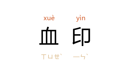 引欧阳山 《高干大》第二一章:“他们脸上都有干了的血印。”高云览 《小城春秋》第四五章:“﹝ 何剑平 ﹞擦伤的额头挂着血痕,衣裳满是泥印和血印。”