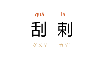 引《金瓶梅·第八六回》:「好不好我把这一屋子里老婆都刮剌了,到官也只是后丈母通奸,论个不应罪名!」