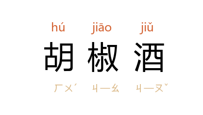 引《《齐民要术·笨麯并酒》引 晋 张华 《博物志》》:“胡椒酒法:以好春酒五升。乾薑一两,胡椒七十枚皆擣末。好美安石榴五枚押取汁。皆以薑椒末及安石榴汁悉内著酒中,火煖取温,亦可冷饮,亦可热饮之……此胡人所谓蓽拨酒也。”萧红 《马伯乐》序章:“车夫一想, 马家 上下,没有对我不好的,老太太一看我不好,常常给我胡椒酒喝。”