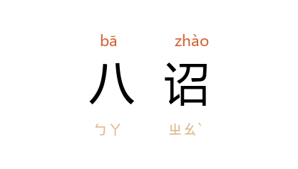 宋 周煇 《清波别志》卷上:“八詔者, 隋 时 永昌 姚州 闻有 蒙舍詔、蒙雟詔、越析詔、浪穹詔、施浪詔 、邆 賧詔,又有 (时)傍、矣川罗识 二族,通号八詔。其后二族为 閤罗凤 所灭,独有六詔。南方之夷,惟 南詔 最大。夷语谓王为詔;或曰,当六詔皆在,岁有事天子各赐一詔,故曰‘八詔’。”