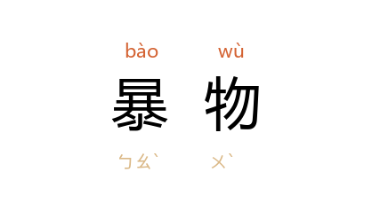 引《淮南子·泰族训》:“逆天暴物,则日月薄蚀,五星失行。”《隋书·百官志上》:“其衣冠子弟,多自修立,非气类者,唯利是求,暴物乱政,皆此之类。”宋 王谠 《唐语林·补遗一》:“上遣 力士 疾召 无畏 请雨, 无畏 奏曰:‘今旱,数当然尔。召龙兴烈风雷雨,适足暴物,不可为也。’”