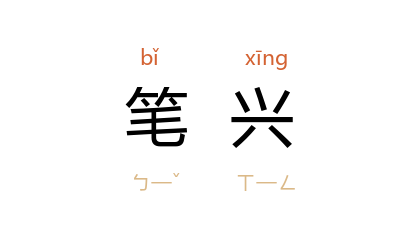 引清 谢章铤 《赌棋山庄词话》卷十二:“《水调歌头》之十三字,或竟作一句,或分作两句,则视填者笔兴之所至矣。”清 谢章铤 《赌棋山庄词话续编》卷四:“词体虽分句读,而作者笔兴所及,时有变化。”