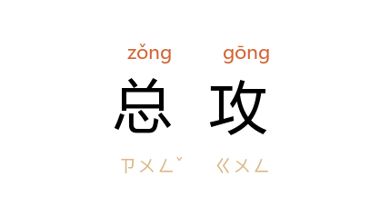 ⒈ 军事上指全线出击或全面进攻。也说“总攻击”