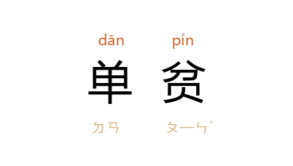 引《三国志·吴志·陆瑁传》:“﹝ 陈国、陈融 等﹞皆单贫有志,就 瑁 游处。”《南齐书·高帝纪下》:“单贫及孤老不能自存者,即听番籍,郡县押领。”唐 孟简 《<咏欧阳行周事>诗序》:“悲夫,生於单贫,以徇名故,心专勤俭,不识声色。”