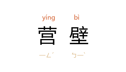 引《六韬·王翼》:“法筭二人,主计会三军营壁粮食财用出入。”《汉书·赵充国传》:“充国 常以远斥候为务,行必为战备,止必坚营壁。”三国 魏 曹植 《与司马仲达书》:“故其俗盖以洲渚为营壁, 江 淮 为城壍而已。”《宋书·沉攸之传》:“其锋陈营壁之主,驱逼寇手之人,若有投命军门,一无所问。”