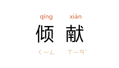 引邹韬奋 《经历·前途》:“我要掮着这枝秃笔,挥洒我的热血,倾献我的精诚,追随为民族解放和大众自由而冲锋陷阵的战士们,‘冒着敌人的炮火前进’!”郭沫若 《落叶》:“有一个可怜的女性倾献她的全身心去爱一位男子。”