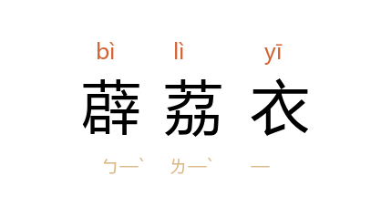 引唐 孟郊 《送豆卢策归别墅》诗:“身披薜荔衣,山陟莓苔梯。”唐 白居易 《重题》诗:“谩献《长杨赋》,虚抛薜荔衣;不能成一事,赢得白头归。”清 曹寅 《小游仙》诗之十三:“黄海 仙人薜荔衣,斑龙偷跨跡如飞。”