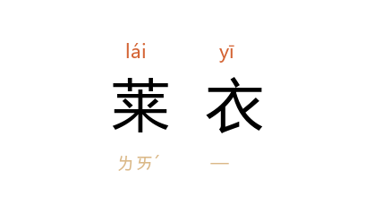 引《初学记·卷一七·人部上·孝四》:「孝子传曰:『老莱子至孝,奉二亲,行年七十,著五彩褊襕衣,弄鶵鸟于亲侧。』」