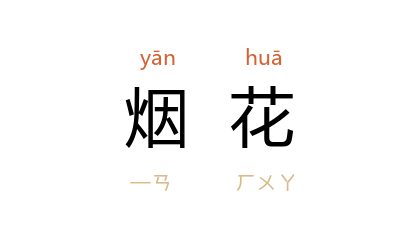 ⒈ 即烟火(也叫焰火),一种燃放时能发出各种颜色的火花而供观赏的东西。