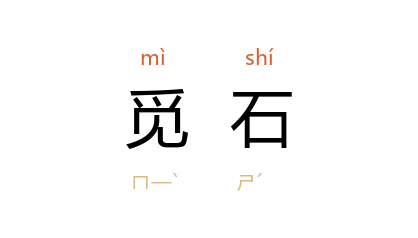 ⒈ 石名。相传 通远军 有水虫类鱼,能“觅觅”鸣叫,击之而化为石,称“觅石”。