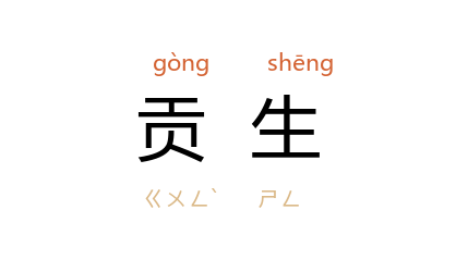 ⒈ 科举时代,选府州县学生员之学行俱优者,贡诸京师,升入太学,有副贡、拔贡、优贡、岁贡、恩贡等名,统称为「贡生」。