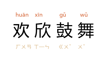 亦作“欢忻鼓舞”。 清 王夫之 《读通鉴论·三国十六》:“因名以劝实,因文以全质,而天下欢忻鼓舞于敦实崇质之中,以不荡其心。”