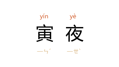 引宋 苏轼 《乞诗赋经义各以分数取人将来只许诗赋兼经状》:“天下学者寅夜竞习诗赋,举业率皆成就。”《前汉书平话》卷下:“大 汉 十六年五月初四日寅夜, 樊亢 领三千军入内,将 吕 家三千口家属,尽皆斩首。”明 彭时 《彭文宪公笔记》:“达官中有 马亮 者知之,寅夜诣至 恭顺侯 吴瑾 家言之。”