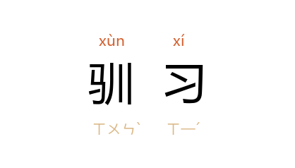 引清 吴省钦 《慰忠祠》诗:“先时番孽降,野心欠驯习。”清 曾国藩 《诰封光禄大夫曾府君墓志铭》:“久而诸孙孙媳,内外长幼,感化驯习,争取垢污襦袴澣濯为乐。”