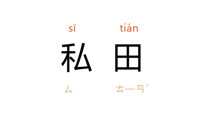 ⒈ 古代井田制度,每井九百亩,八家各分配百亩,称为“私田”。