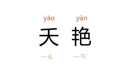 引唐 施肩吾 《杜鹃花词》:“杜鹃花时夭艳然,所恨帝城人不识。”宋 王禹偁 《官舍竹》诗:“不随夭艷争春色,独守孤贞待岁寒。”清 魏源 《默觚上·学篇十一》:“经霜雪而后彫之木,必非有灼灼夭艳之材也。”