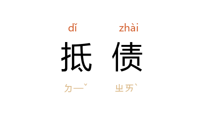 例如:「他付不出如此庞大的债务,只好先将车子交给债主以抵债。」