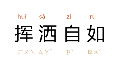 引《三国演义·第五七回》:「挥洒自如,雅量高志。」《孽海花·第二五回》:「家人送上一枝蘸满墨水的笔,珏斋提笔,在纸上挥洒自如的写了一百多字。」