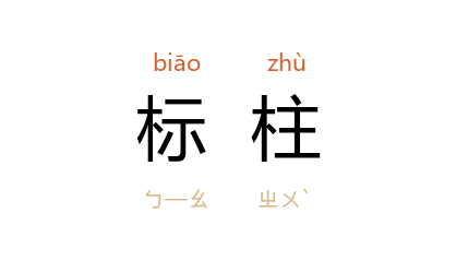 引《水浒传》第七四回:“燕青 歇下担儿,分开人丛,也挨向前看时,只见两条红标柱,恰与坊巷牌额一般相似,上立一面粉牌。”《三国演义》第七五回:“佗(华佗 )曰:当於静处立一标柱,上钉大环,请君侯将臂穿於环中,以绳繫之。”