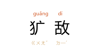 引《后汉书·段熲传》:“﹝ 张奂 ﹞不能平寇,虚欲修文戢戈,招降獷敌,诞辞空説,僭而无徵。”南朝 梁 沉约 《举胡元秀表》:“若置之六师之间,处之一旅之上,必能前奋獷敌,却沮强胡。”