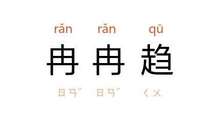⒈ 《玉台新咏·日出东南隅行》:“盈盈公府步,冉冉府中趋。”后以“冉冉趋”指仕宦为政。