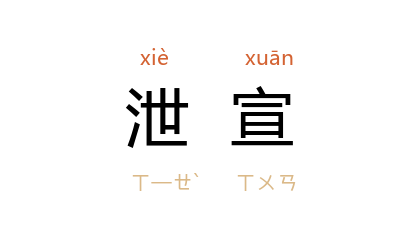 宣泄,宣露。 《三国志·蜀志·庞统传》“先主大笑,宴乐如初” 裴松之 注引 晋 习凿齿 曰:“庞统 惧斯言之泄宣,知其君之必悟,故众中匡其失,而不脩常谦之道,矫然太当,尽其蹇諤之风。”