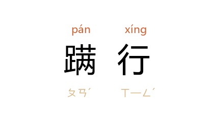 引宋 叶适 《草庐先生墓志铭》:“面於 方山,木或春彫,草或冬蕃,井不先汲,炊不蚤熟,蹣行株坐自若也。”清 包世臣 《与杨季子论文书》:“而戾者乃欲颠倒条理,删节助字,务取詰屈,以眩读者。是何异自憾状貌之无以过人,而抉目截耳,折筋刲脇,蹣行於市,而矜詡其有异於人人也耶?”
