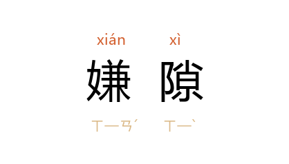 ⒈ 亦作“嫌隟”。亦作“嫌郤”。因猜疑或不满而产生的恶感、仇怨。