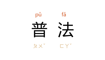 ⒈ 三阶教对修行方式、态度的一种方法。分为普法和别法两类,普法是指对法不分大、小乘,于人不辨圣、凡,普信普敬,不尊此法而斥他法,这是第三阶众生最适合修行的方法。