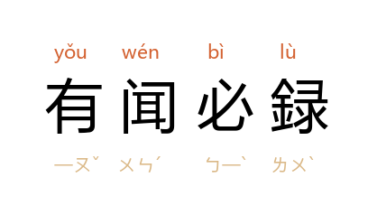 引《宦海》第十一回:“不过照着有闻必録的例儿,姑且的留资谈助。”鲁迅 《且介亭杂文二集·论“人言可畏”》:“‘有闻必录’或‘并无能力’的话,都不是向上的负责的记者所该采用的口头禅,因为在实际上,并不如此--它是有选择的,有作用的。”朱自清 《回来杂记》:“前一种现象别处似乎没有,后一种现象别处虽然有,却不像这儿的认真--几乎有闻必录。”