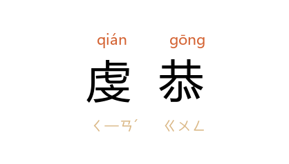 引《汉书·叙传下》:“秺侯 狄 孥,虔恭忠信。”《晋书·袁瓌传》:“陛下以圣明临朝,百官以虔恭莅事。”明 沉鲸 《双珠记·术士玄谋》:“苦刑期已迫,无门诉控。致虔恭欲求转日回天策,歷尽关山几万重。”茅盾 《一个真正的中国人》:“也只有从早餐的牛奶里太太可以表现她是怎样虔恭地‘回到厨房’。”