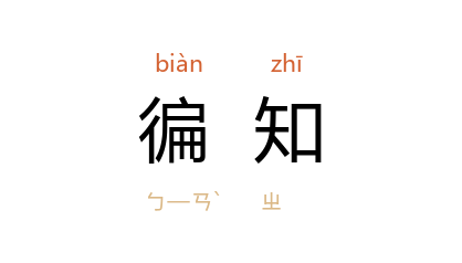 引《管子·七法》:“为兵之数……存乎徧知天下,而徧知天下无数。”《墨子·尚同中》:“是以数千万里之外,有为善者,其室人未徧知,乡里未徧闻,天子得而赏之。”《荀子·儒效》:“君子所谓知者,非能徧知人之所知之谓也。”鲁迅 《坟·文化偏至论》:“由是观之,彼之謳歌众数,奉若神明者,盖仅见光明一端,他未徧知。”