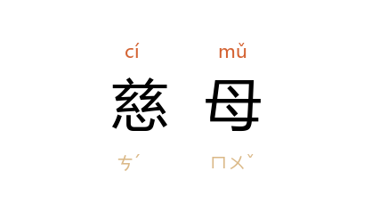 ⒈ 古谓父严母慈,故称母为慈母;古称抚育自己成人的庶母为慈母。