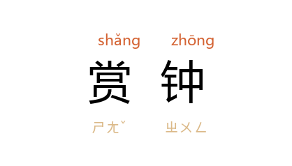 引《水浒传》第七二回:“李师师 叫取大银赏钟,各与三钟…… 宋江 曰:‘大丈夫饮酒,何用小杯!’就取过赏钟,连饮数钟。”《二刻拍案惊奇》卷八:“饮至半酣, 丁生 家童另将一个包袱放在左边一张桌子上面,取出一个匣子开了,拿出一对赏钟来。”