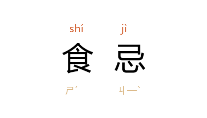 引唐 张祜 《秋日病中》诗:“无端忧食忌,开镜倍萎黄。”鲁迅 《花边文学·读书忌》:“记得 中国 的医书中,常常记载着‘食忌’,就是说,某两种食物同食,是于人有害,或者足以杀人的,例如葱与蜜,蟹与杮子,落花生与王瓜之类。”
