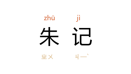 ⒈ 红色的印记。古代以胶泥封公文、书简,隋唐后改用红色颜料来钤印封口,称为「朱记」。