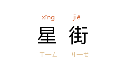 ⒈ 星区名。毕昴两星分别在黄道之南北,日月五星皆循黄道而行,出入毕昴之间,故称两星间之区域为星街。