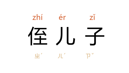 引《二十年目睹之怪现状》第八十回:“我姊姊已经择继了一个六岁大的侄儿子为嗣,改名 念椿。”《二十年目睹之怪现状》第十八回:“只是他躺在地下,乱嚷起来道:‘反了,反了!侄儿子打伯父了!’”