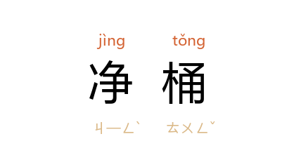 引《西游记·第一八回》:「行者跳起来,坐在净桶上。」《红楼梦·第一二回》:「心下正盘算,只听头顶上一声响,嗗拉拉一净桶尿粪从上面直泼下来,可巧浇了他一头一身。」