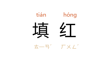 ⒈ 旧时官员在公文上用红笔亲自填写年月日,谓之填红。