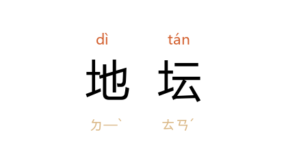 ⒈ 皇帝祭地的坛。又称“方泽”、“方丘”。今北京市安定门外有明清地坛,明嘉靖九年建,清重加修治。方形,周围约五十丈,广八九丈,中有方坛。