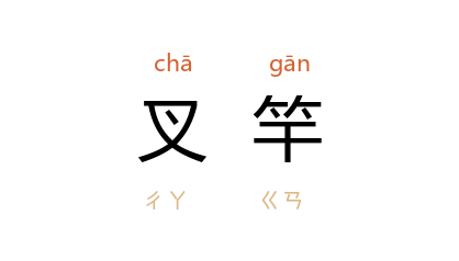 引《金瓶梅·第二回》:「妇人正手里拏著叉竿放帘子,忽被一阵风将叉竿刮倒。」