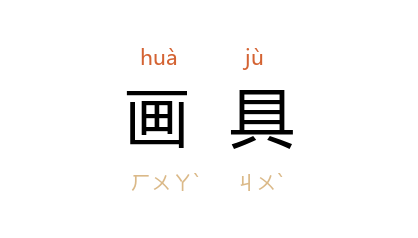 引清·孔尚任《桃花扇·第二八出》:「美人一去,庭院寂寥,正好点染云烟,应酬画债。不免将文房画具,整理起来。」《红楼梦·第四五回》:「至晚,果然凤姐命人找了许多旧收的画具出来,送至园中。」
