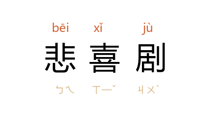 ⒈ 介于悲剧和喜剧之间的戏剧。其情节的发展有可能成为悲剧,但结果却以喜剧收场。此词出现罗马时代,但真正悲喜剧的出现要到文艺复兴时期,以莎士比亚的《威尼斯商人》为代表作。