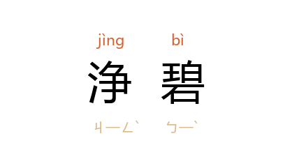 引唐 罗隐 《秋霁后》诗:“浄碧山光冷,圆明露点匀。”宋 梅尧臣 《寄李献甫》诗:“安知秋江水,浄碧如磨铜。”清 袁枚 《新齐谐·谢檀霞》:“﹝ 昉 ﹞爱江水浄碧,凡衣裳襟带,都促奴子再三澣濯。”