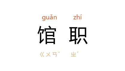 ⒈ 唐宋时,凡在史馆、昭文馆、集贤院等处为直馆、直院等官职,称为「馆职」。。