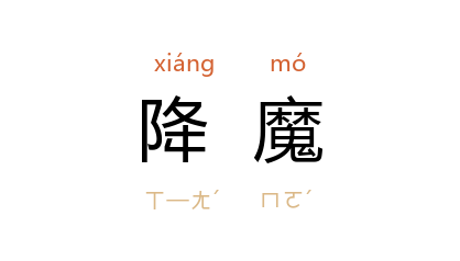 ⒈ 佛教语。相传 释迦牟尼 在成佛前,曾与魔王进行激烈斗争,并取得胜利。佛教史上称为“降魔”。见《过去现在因果经》卷三。后常用作降服妖魔的典故。