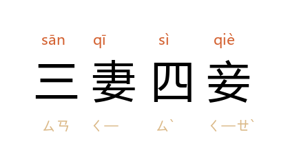 引清 李渔 《风筝误·逼婚》:“你做状元的人,三妻四妾,任凭再娶。”聂绀弩 《辈分·寿命·体格》:“富贵人家有三妻四妾的是常事。”